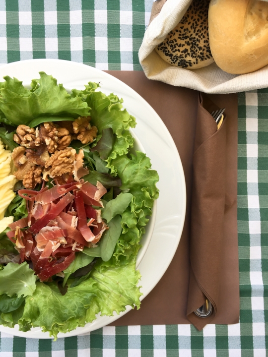 Insalata, bresaola della Valtellina IGP, mandorle, casera e crostini